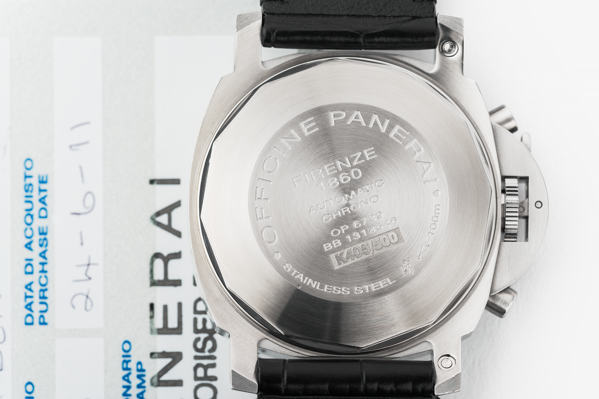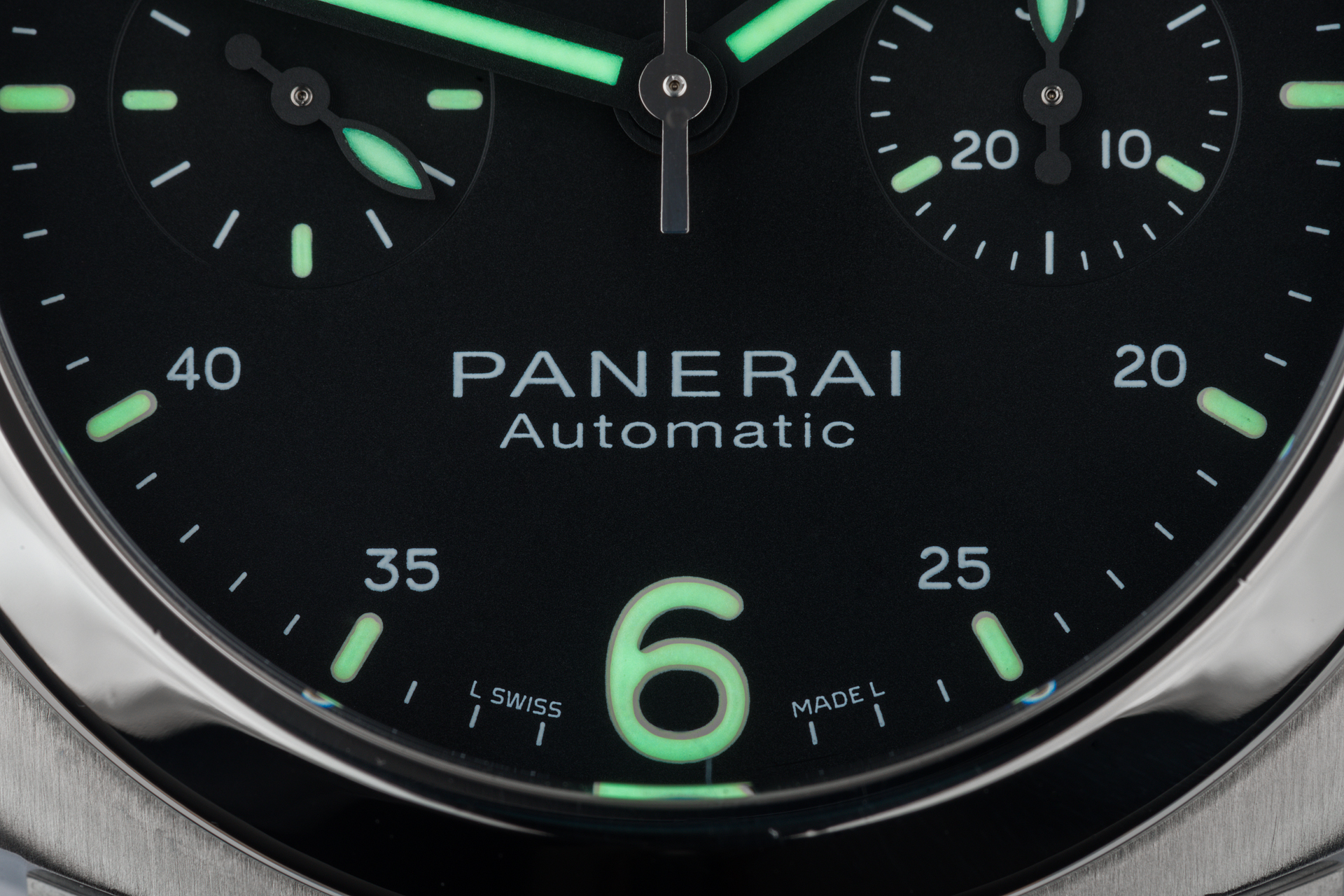 We do not see many of these Luminors in the popular 47mm case size and when we do they rarely stick around for long. This example sports a clean black luminova dial with a perfectly symmetrical twin register chronograph layout, water proof to 100m and powered by the trusty OP XII calibre movement.